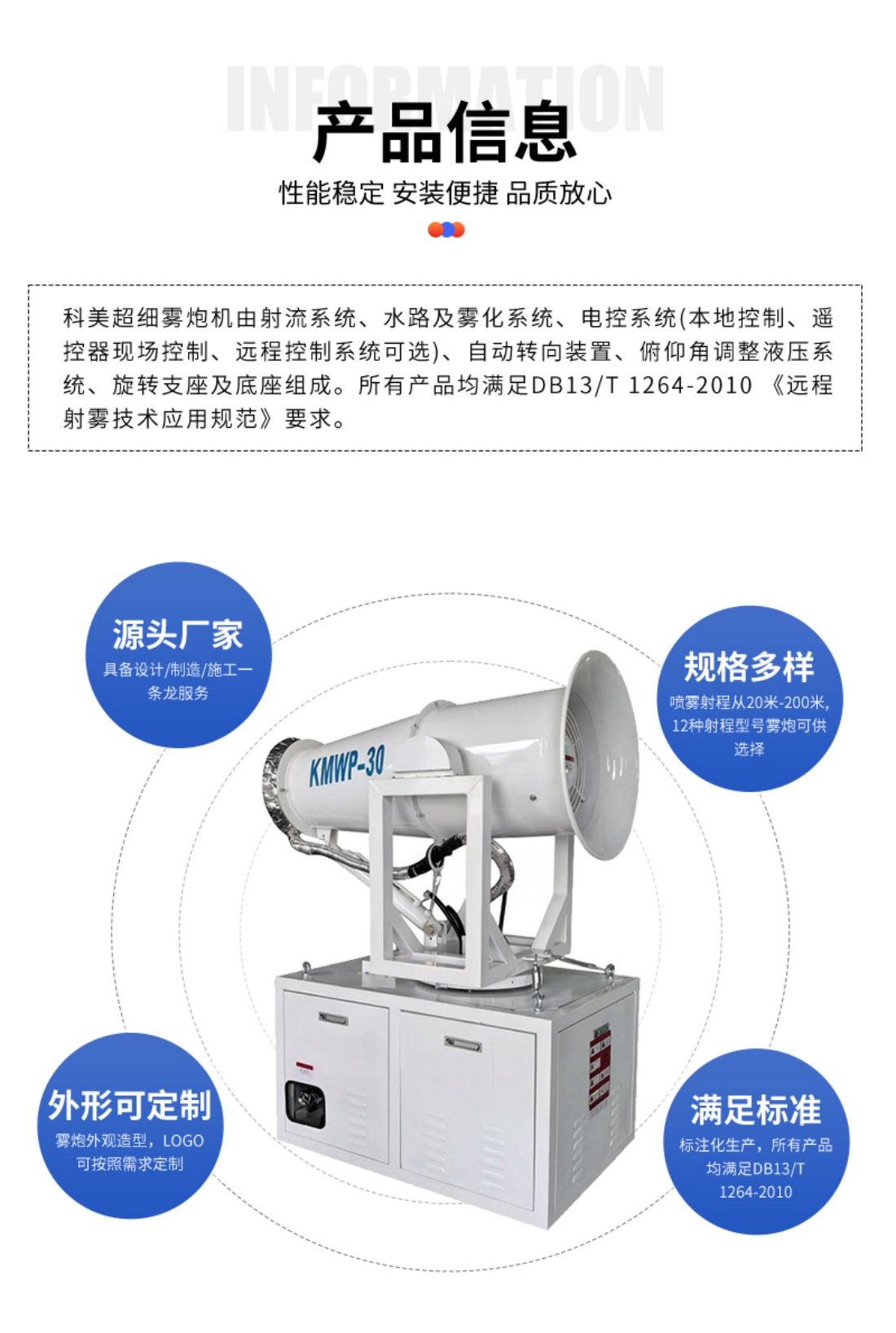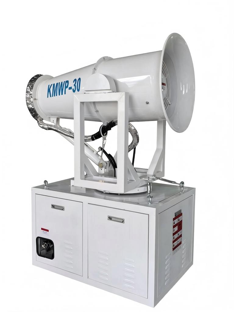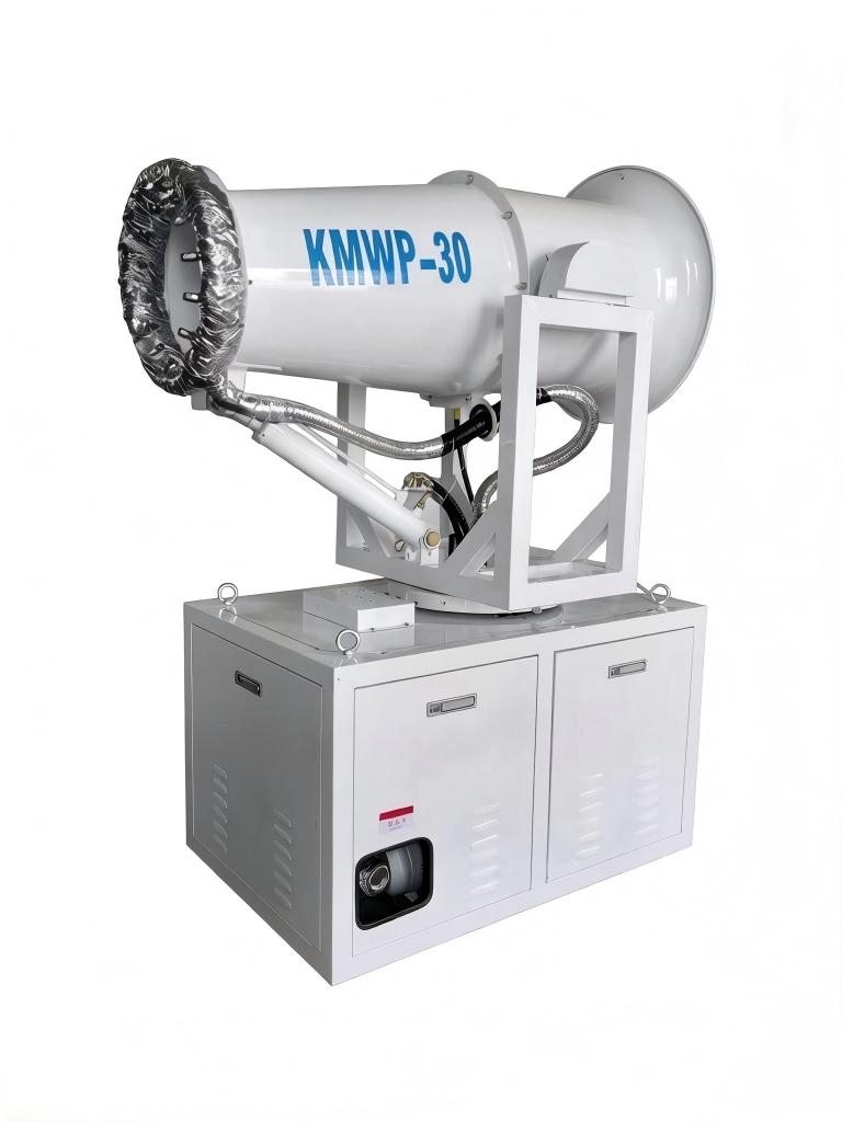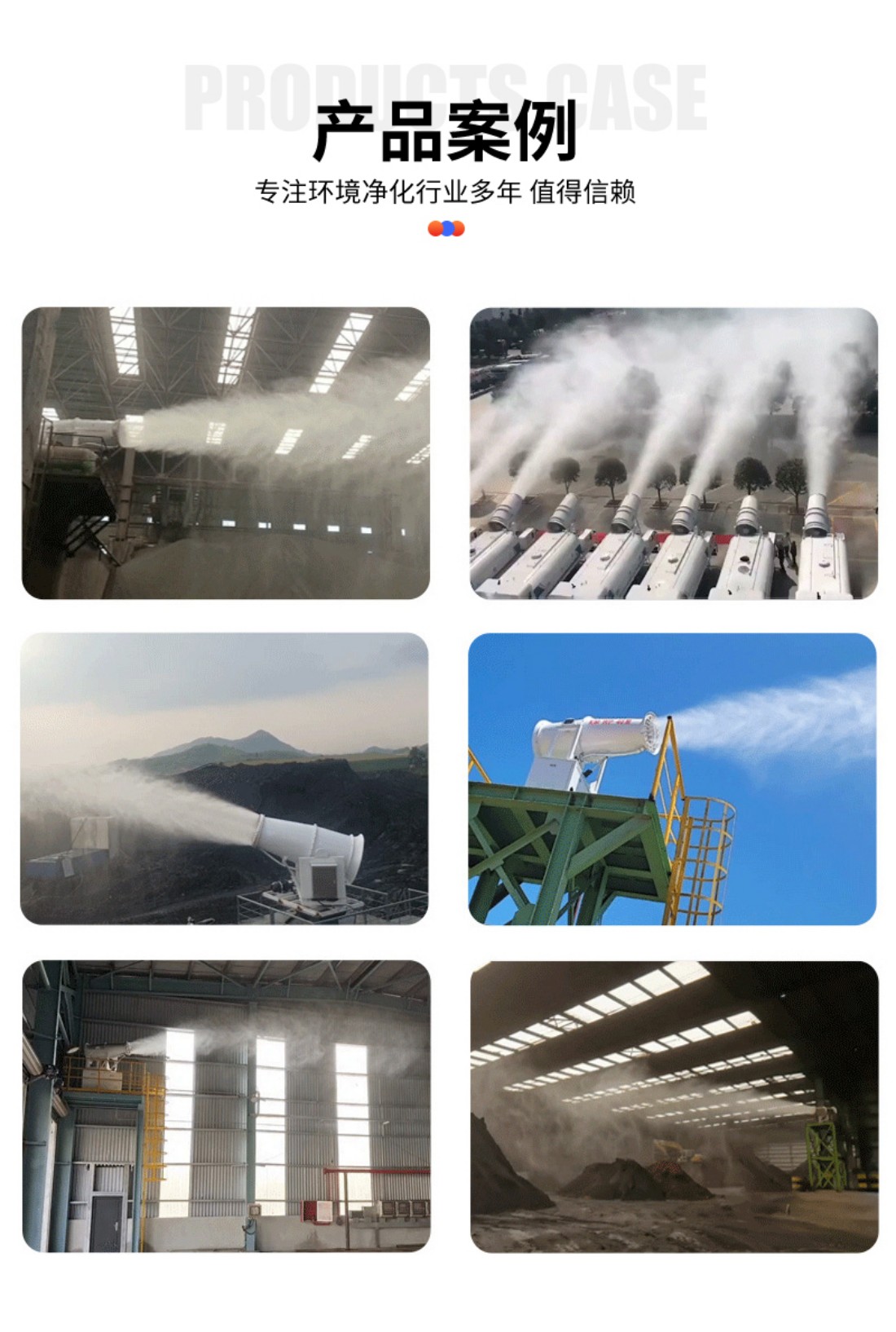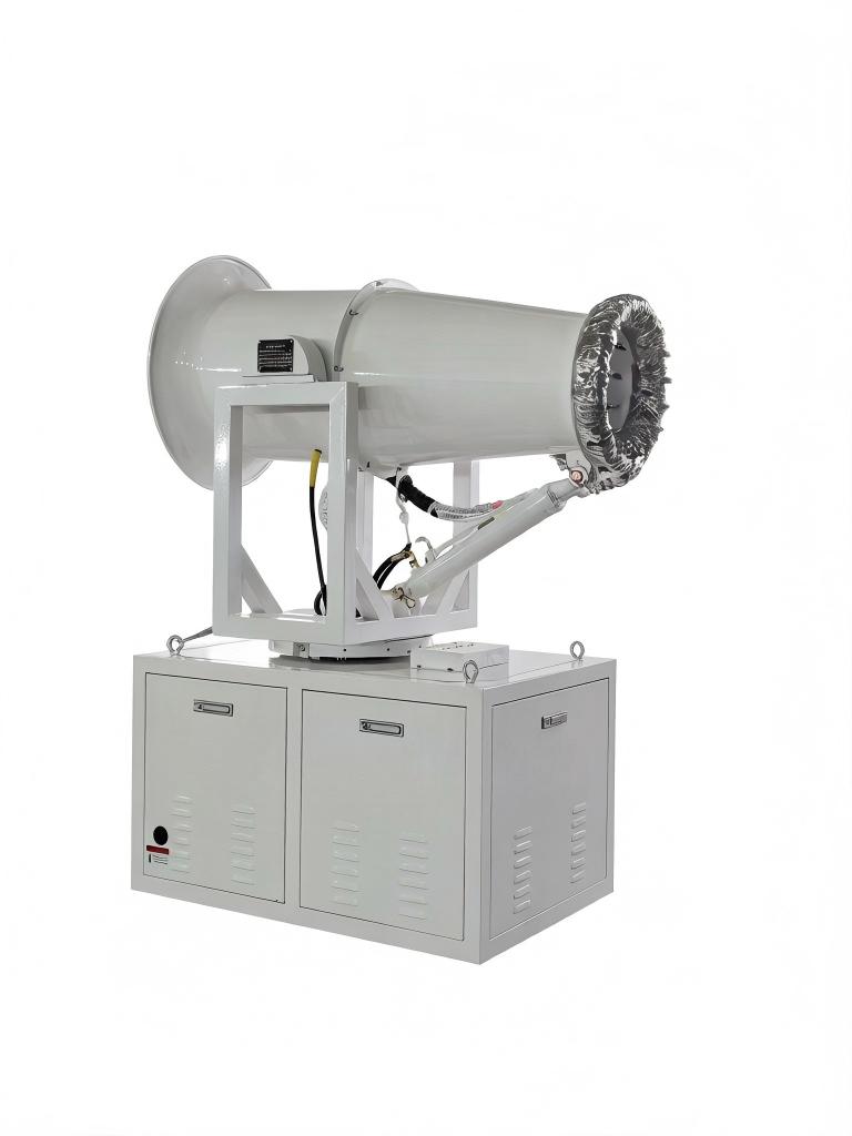 雾炮机,也叫环保除尘风送式喷雾机,是一种高效的降尘环保设备。它的核心原理是通过高压将水雾化成微小的颗粒,再利用大功率风机把水雾输送到远处,让水雾与空气中的粉尘结合,在重力作用下沉降,从而达到除尘、降温和净化空气的效果