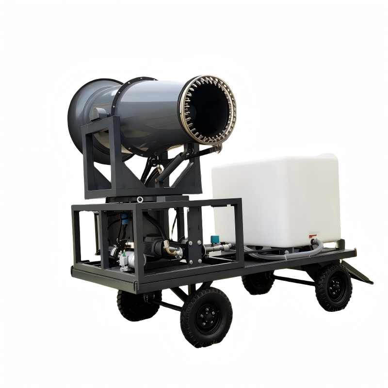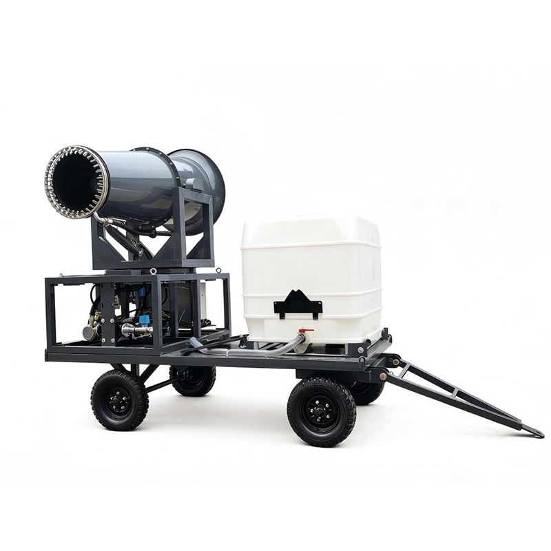 拖车式雾炮机是一种将喷雾除尘设备集成于移动拖车底盘上的机动型环保装备。它采用拖车底盘作为承载平台,将雾炮主机、水箱、发电机组等核心部件一体化集成,具备牵引移动、快速部署、独立作业的特点。 相比固定式雾炮机,拖车式雾炮机的最大优势在于机动灵活性——可被车辆牵引至任何需要降尘的作业现场,单台设备即可覆盖多个作业区域,大幅提升设备利用率和投资回报率。 设备射程覆盖30-150米,单台覆盖面积最高可达50000平方米,适用于建筑工地、矿山堆场、港口码头、市政环卫等多种场景