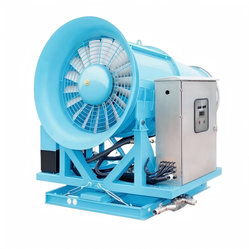 80米卧式雾炮机是一款高效环保除尘设备,采用卧式风筒结构设计,整机结构紧凑、布局合理。设备具备射程远、覆盖范围广、雾粒细小等特点,适用于建筑工地、矿山堆场、港口码头、煤场电厂等各类扬尘场所的抑尘降尘作业。 设备静风条件下射程可达80米,单台覆盖面积超过20000平方米,是大型露天作业场所粉尘治理的理想选择